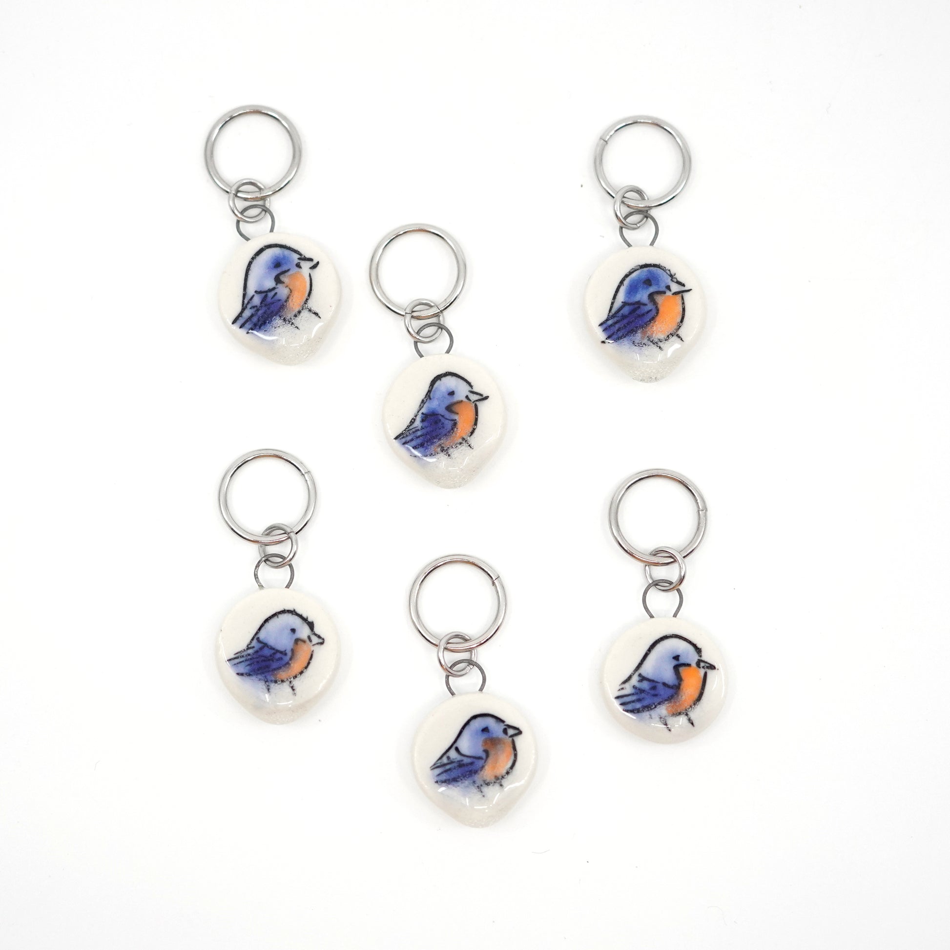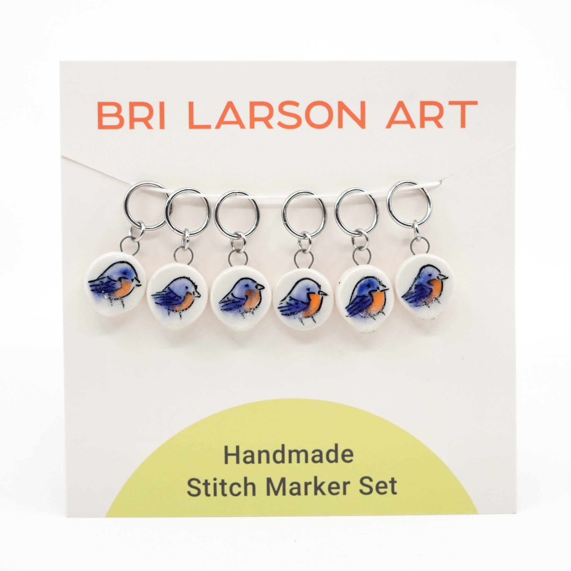 Add some handmade stitch markers to your knitting project! These little stitch markers come in a set of 6 and are shown on a size 10 needle.
