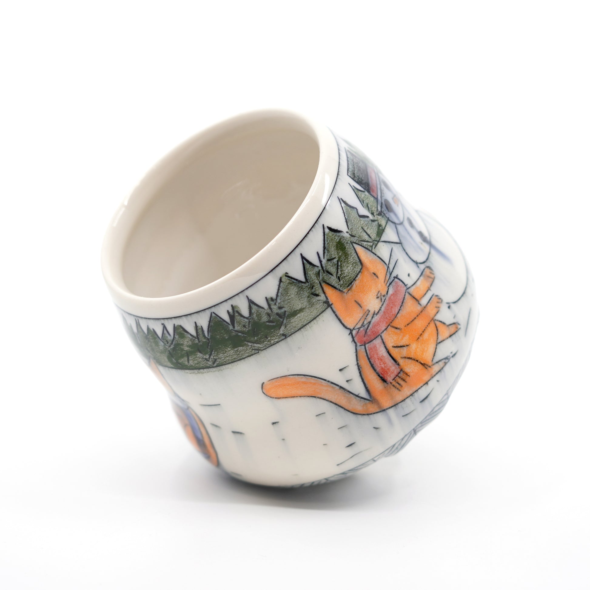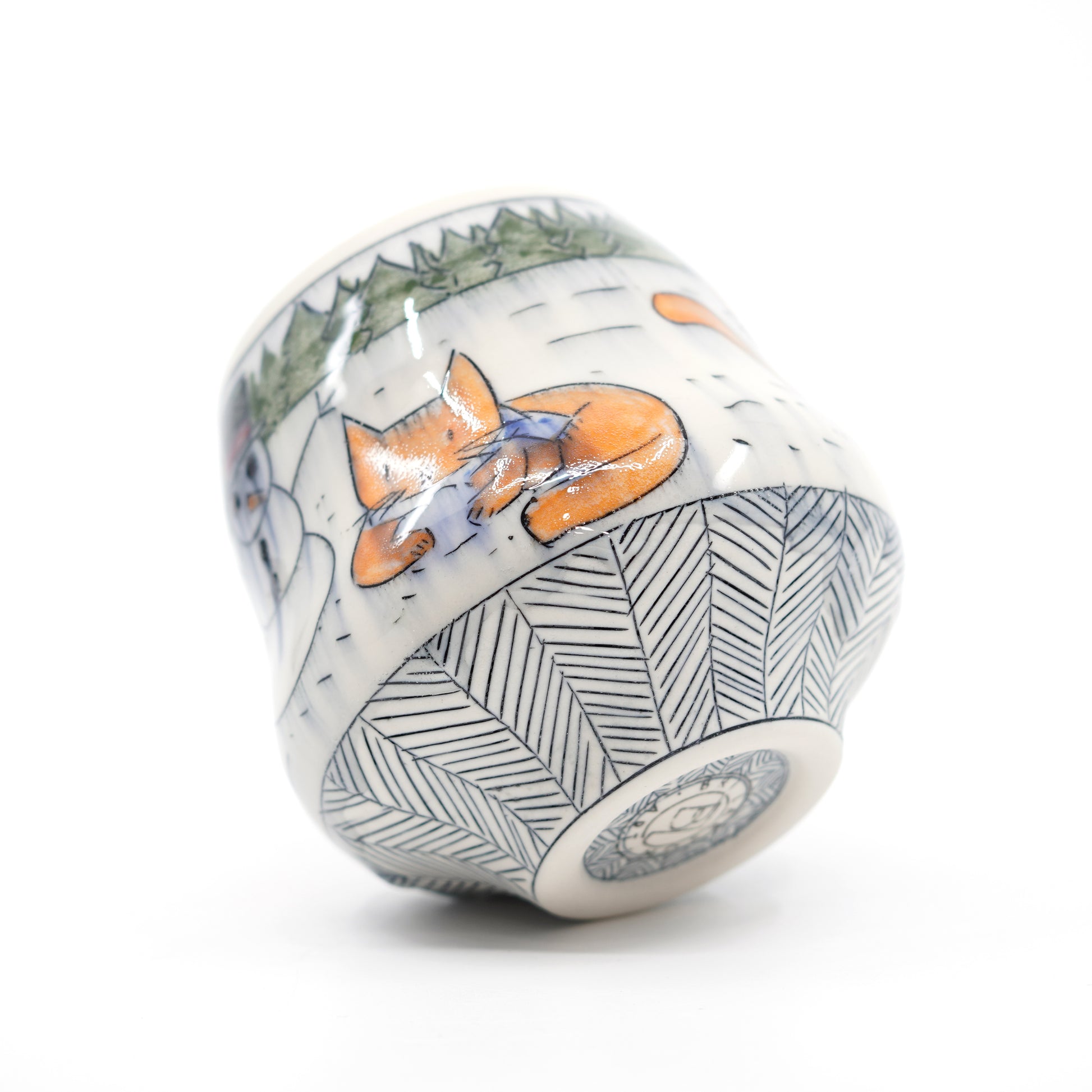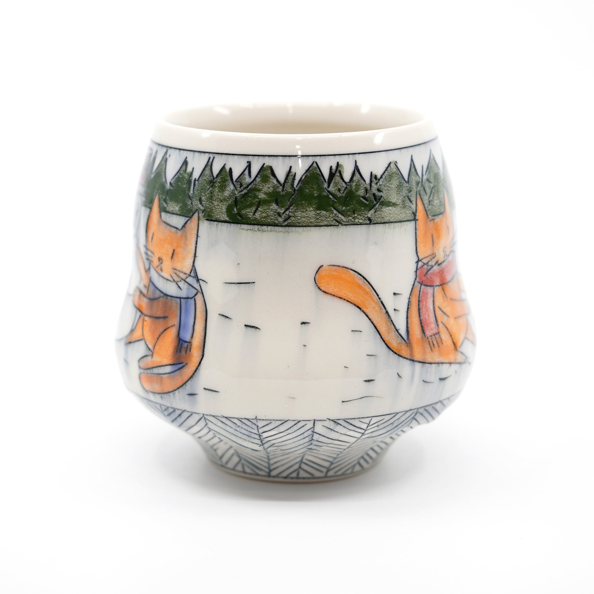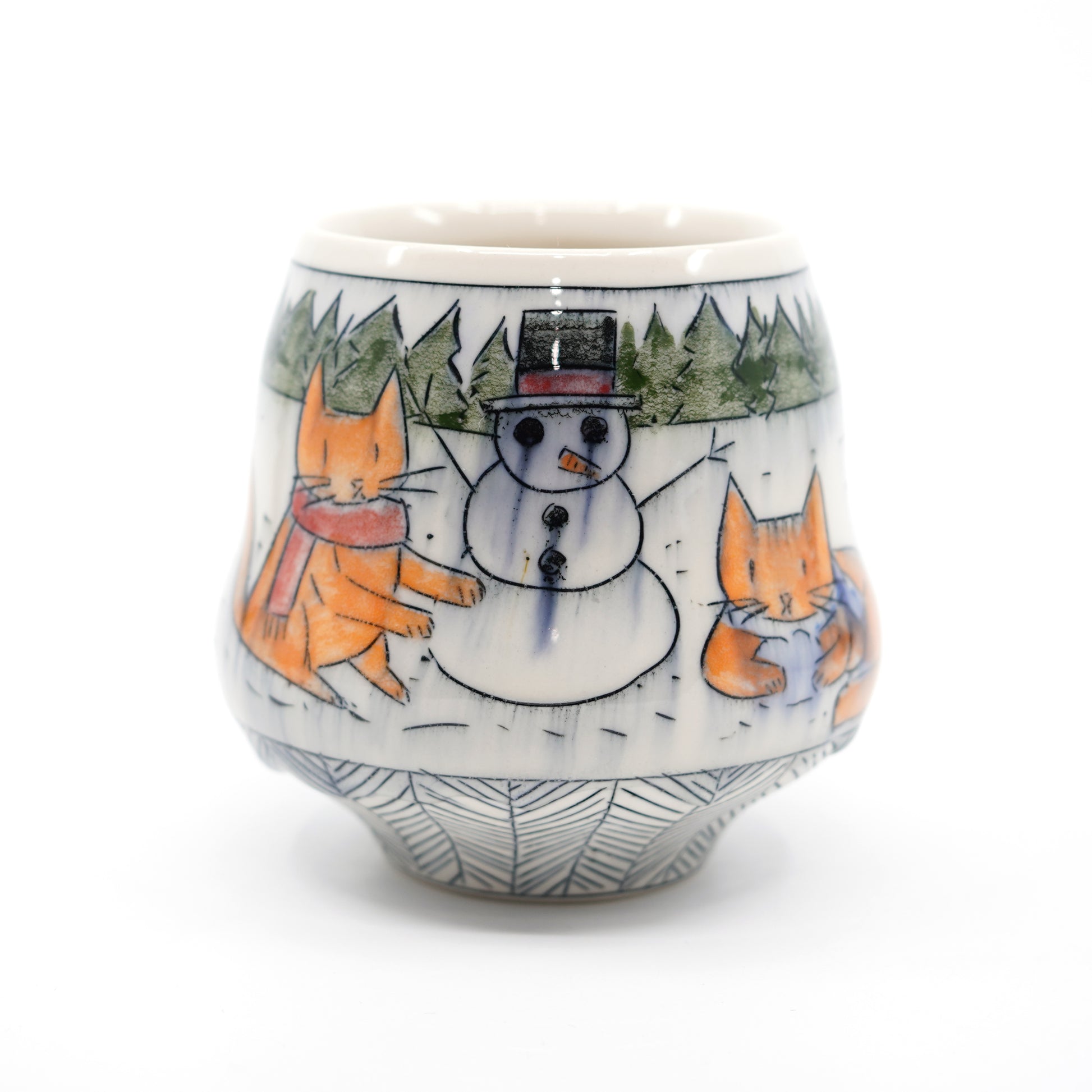 Measures about 3.75 inches tall, 3.25 inches wide and holds approximately 12 fl oz.