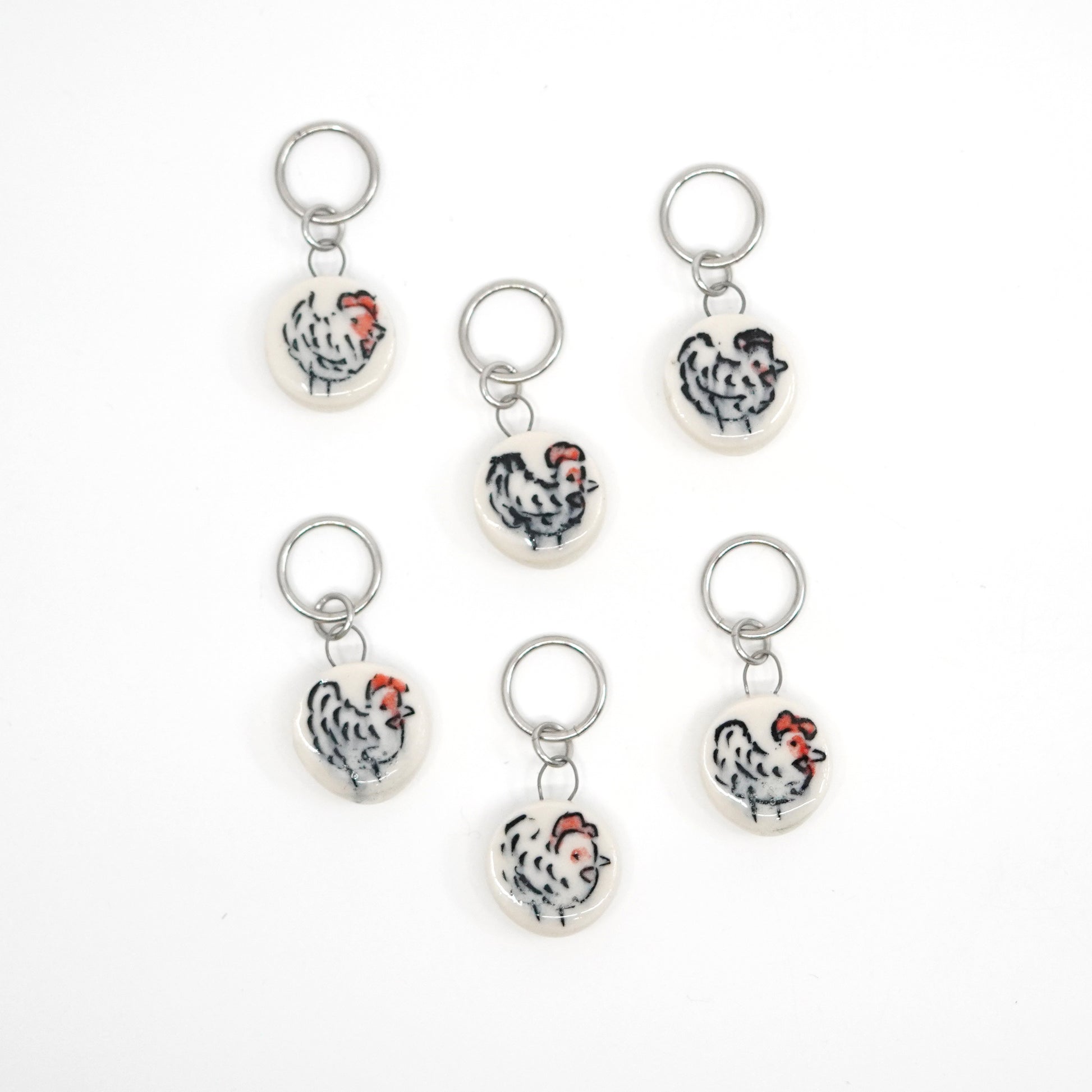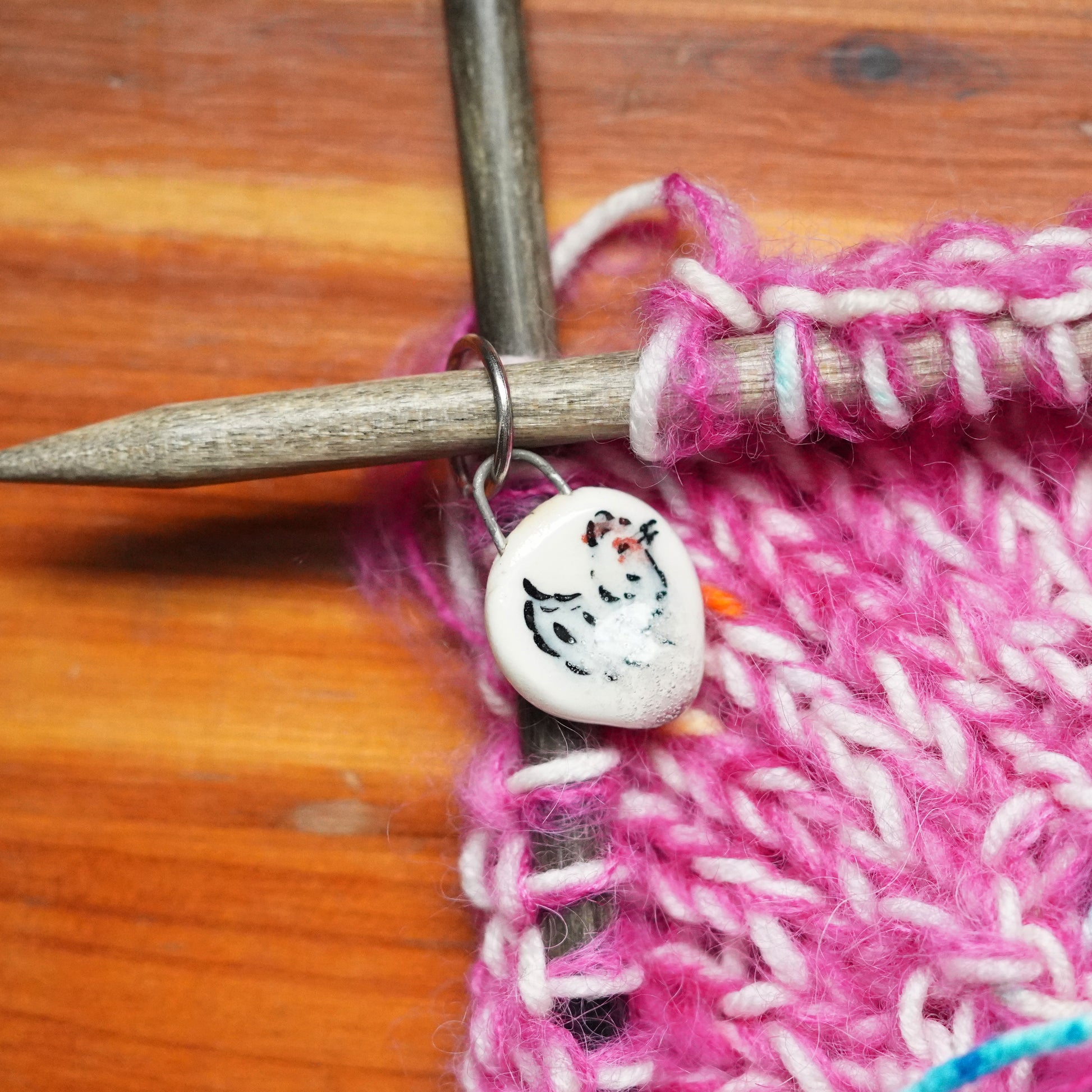 Add some handmade stitch markers to your knitting project! These little stitch markers come in a set of 6 and are shown on a size 10 needle.