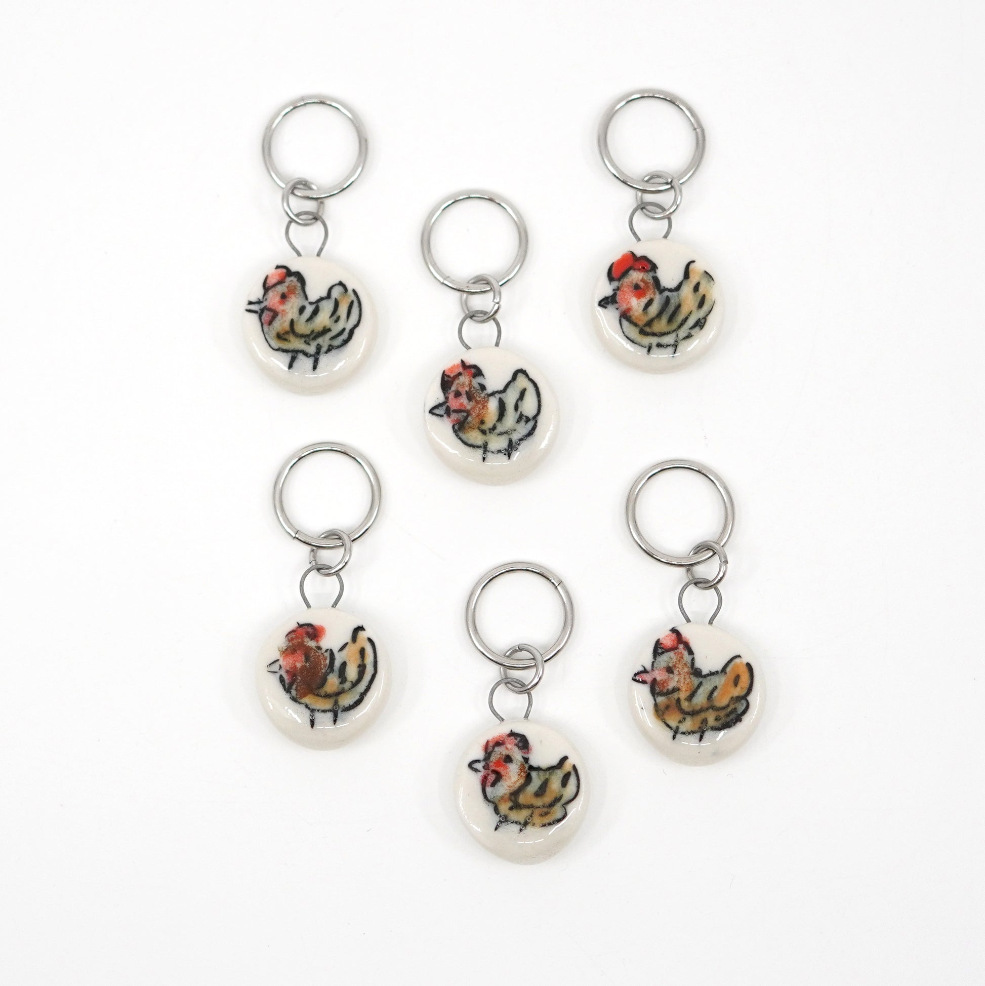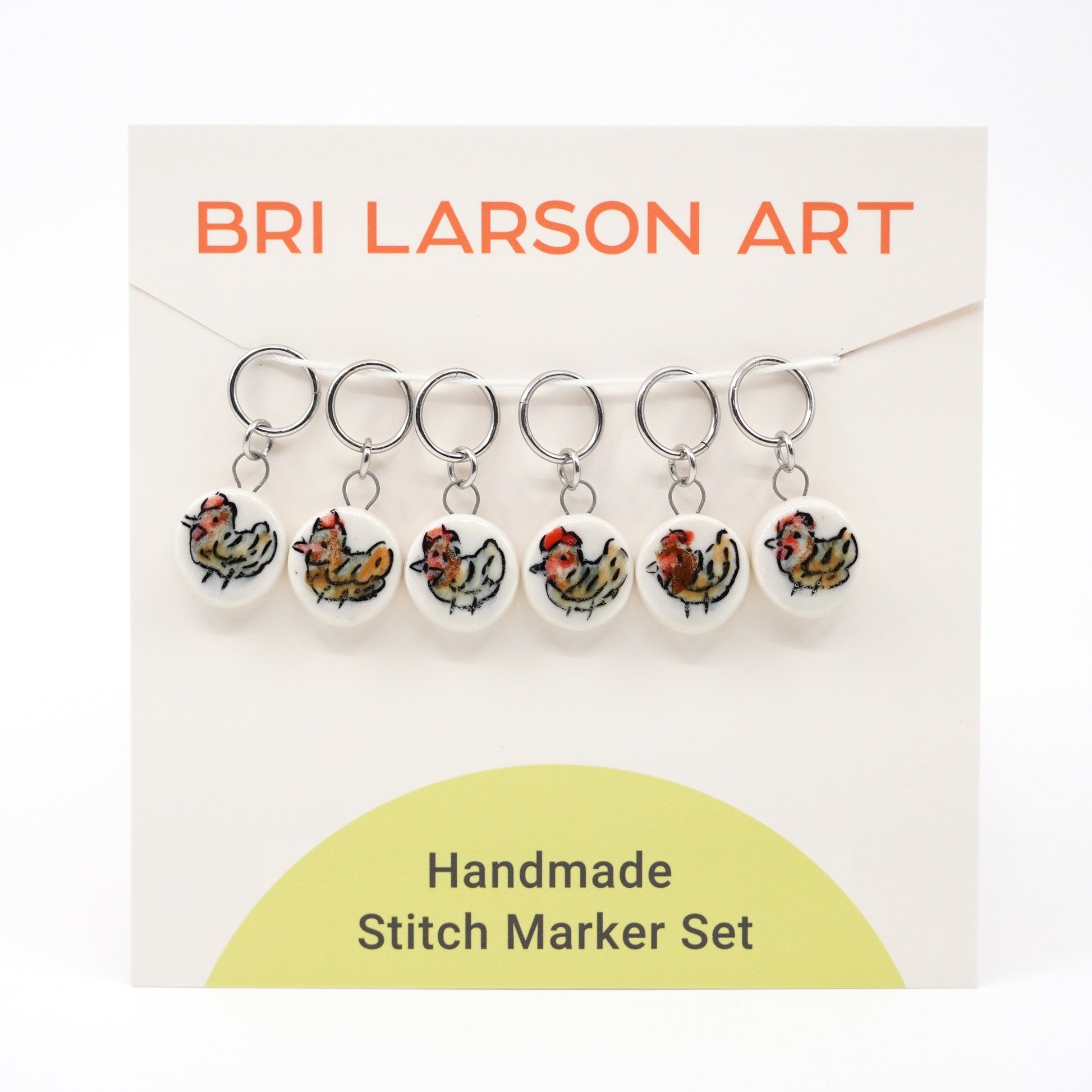 Add some handmade stitch markers to your knitting project! These little stitch markers come in a set of 6 and are shown on a size 10 needle.
