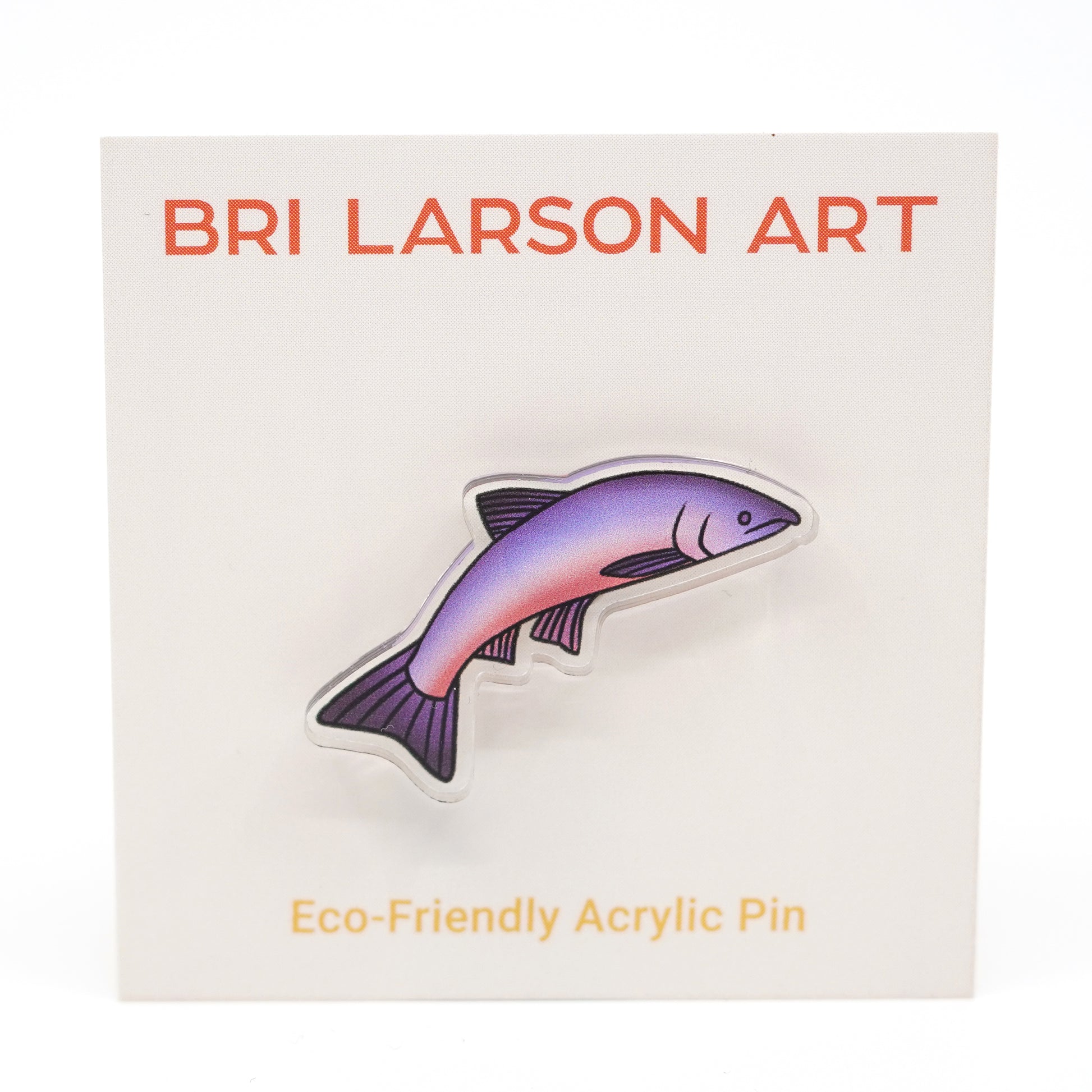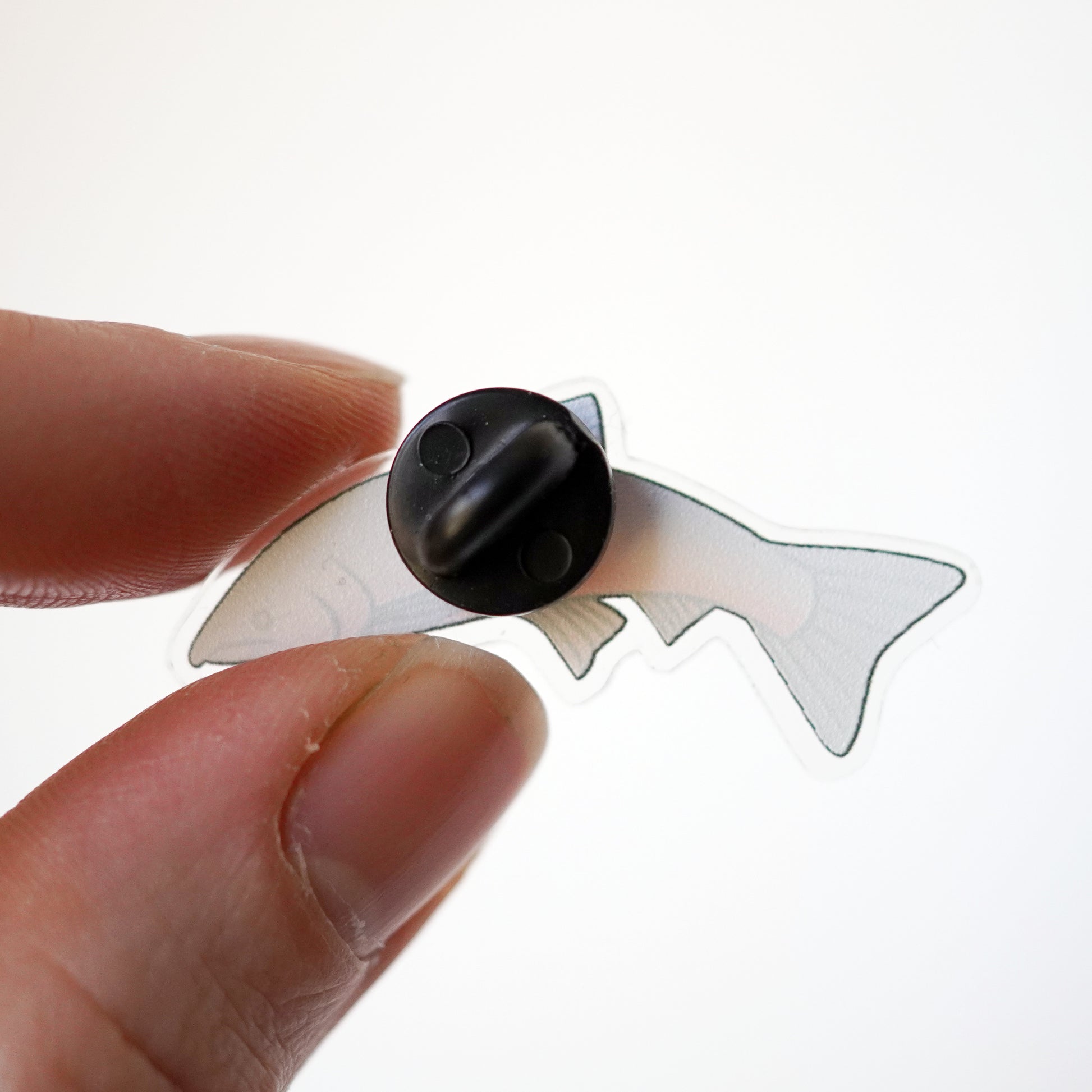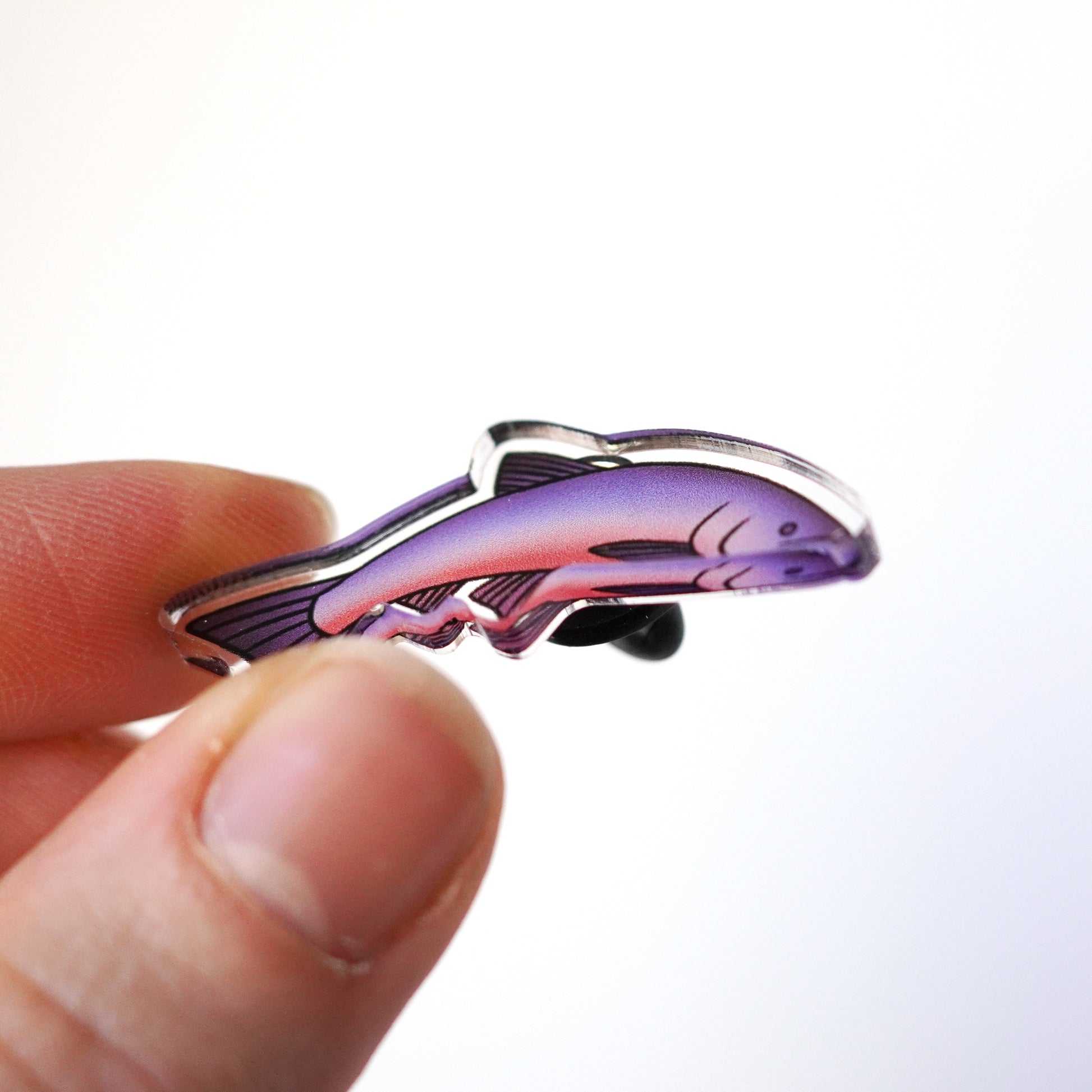 Show off your love of fishing with this eco-friendly acrylic pin! Measures approximately 1.25 inches wide.