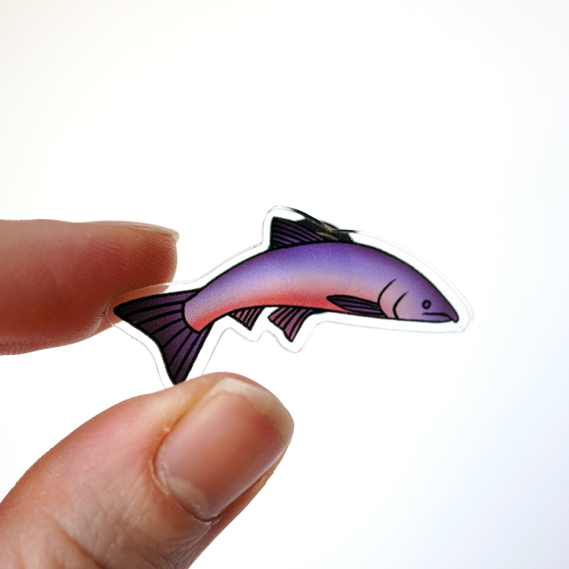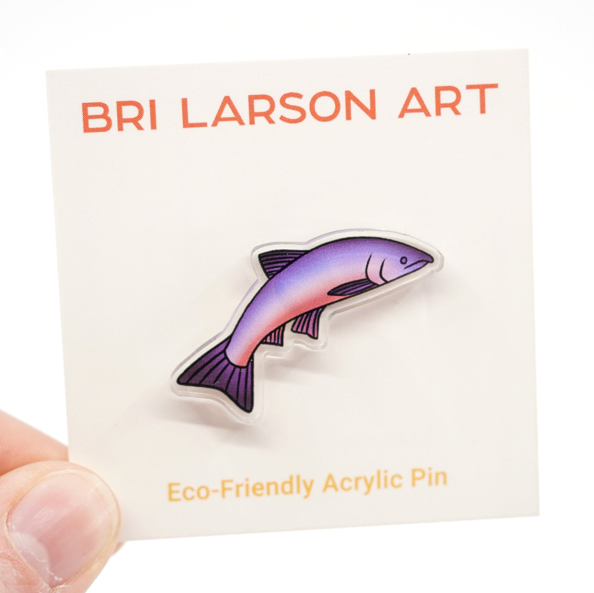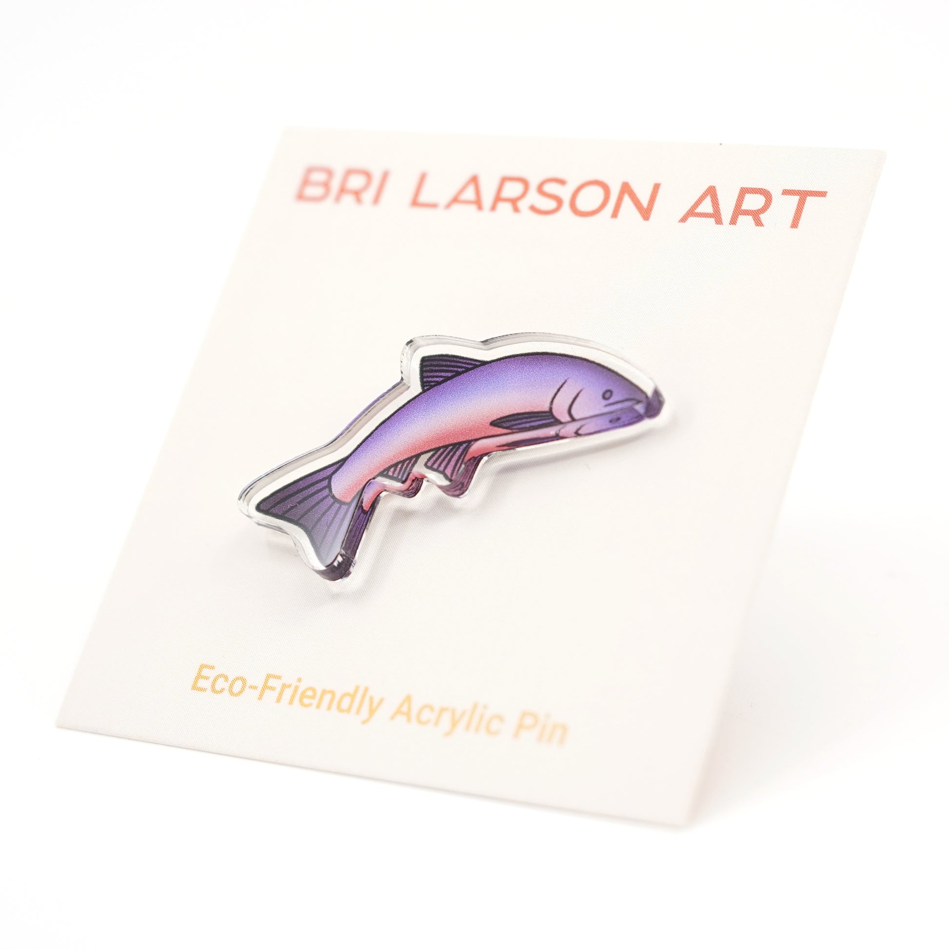 Show off your love of fishing with this eco-friendly acrylic pin! Measures approximately 1.25 inches wide.