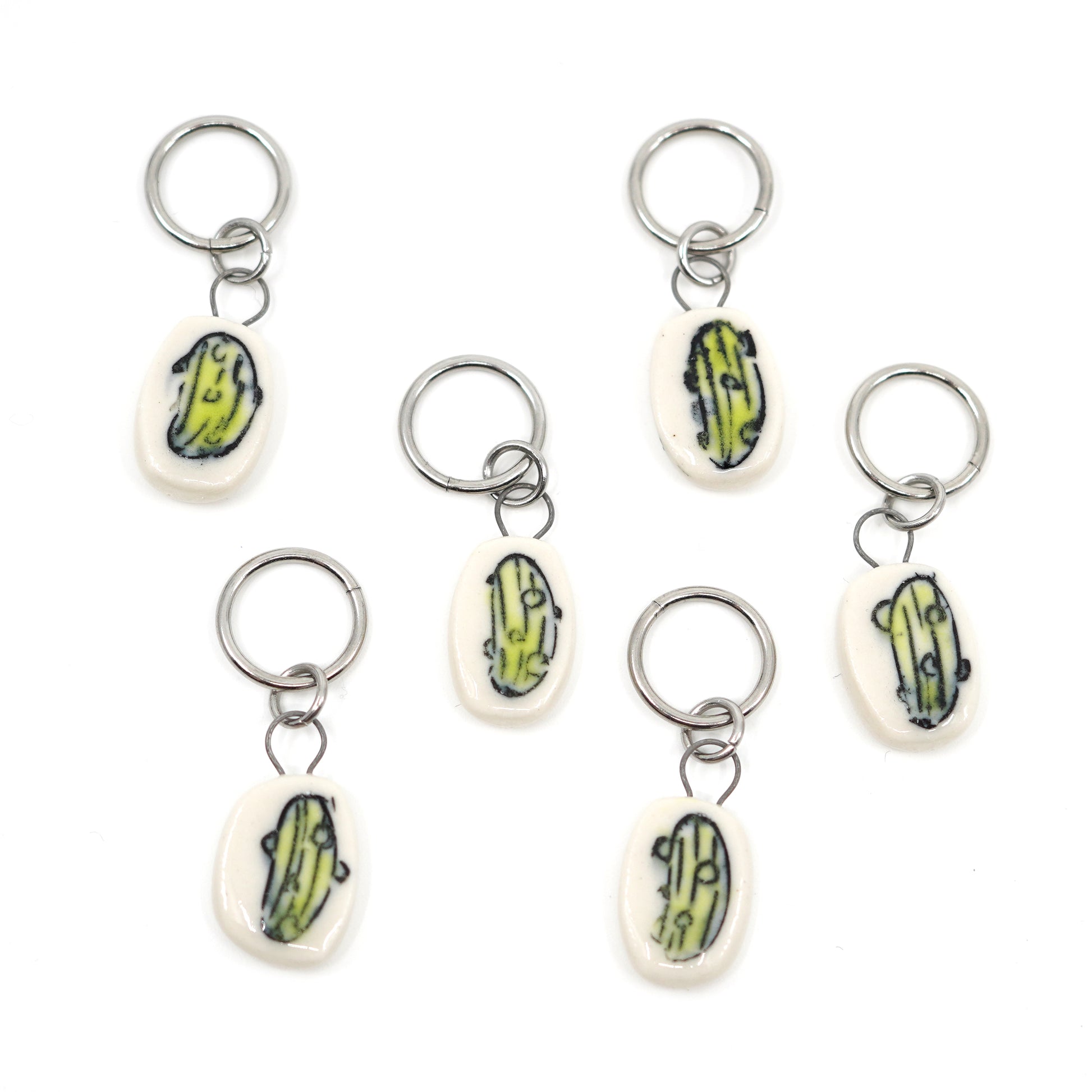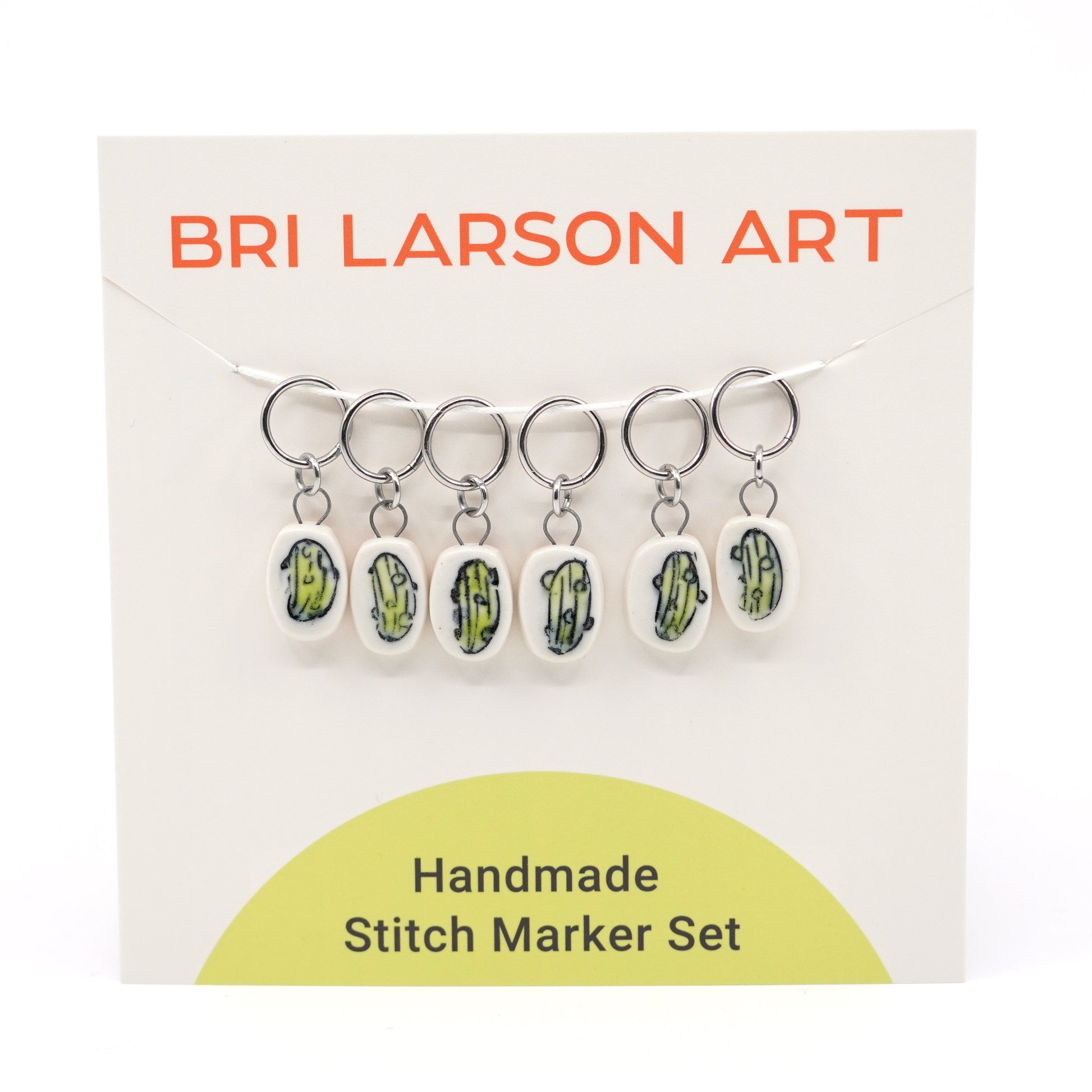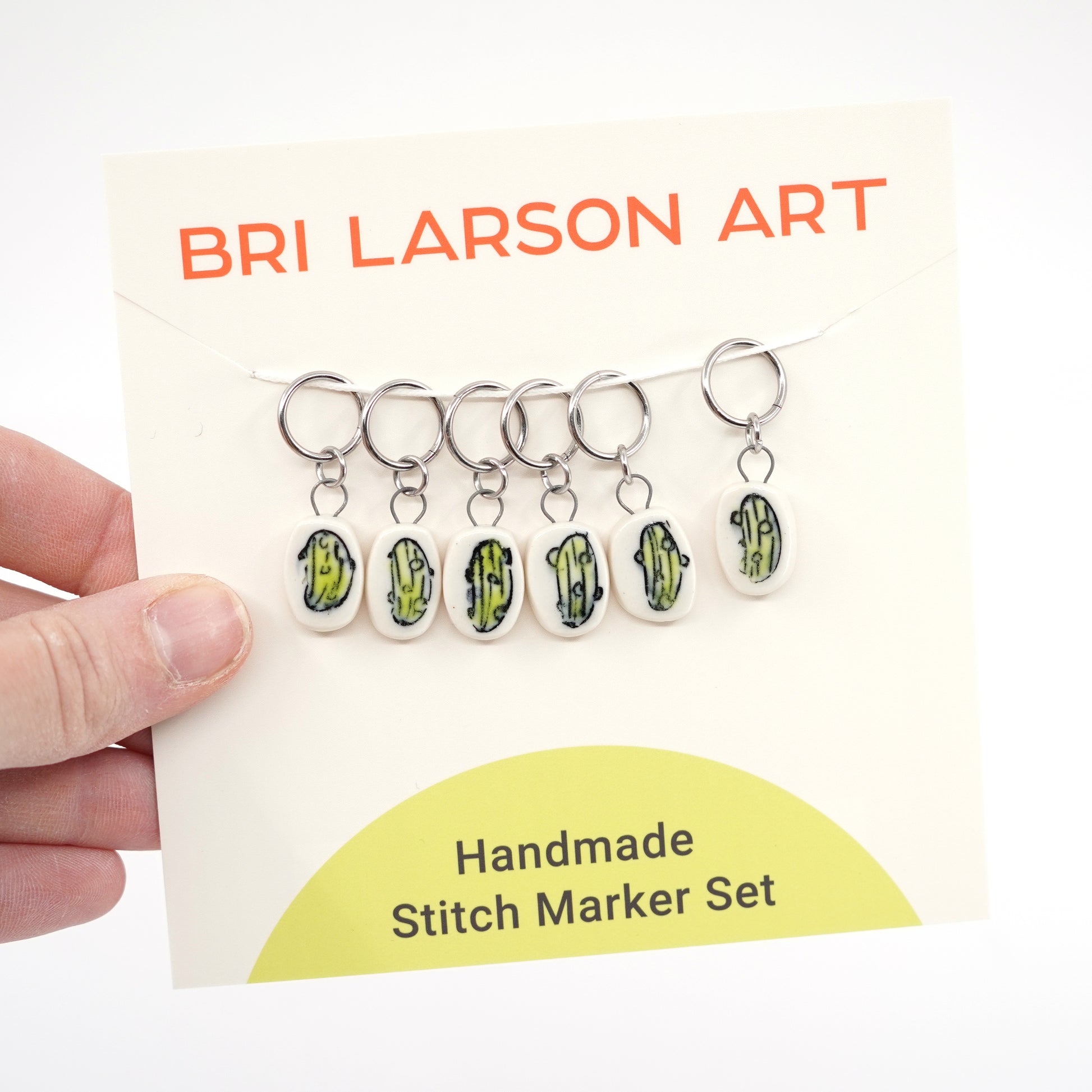 Add some handmade stitch markers to your knitting project! These little stitch markers come in a set of 6 and are shown on a size 10 needle.