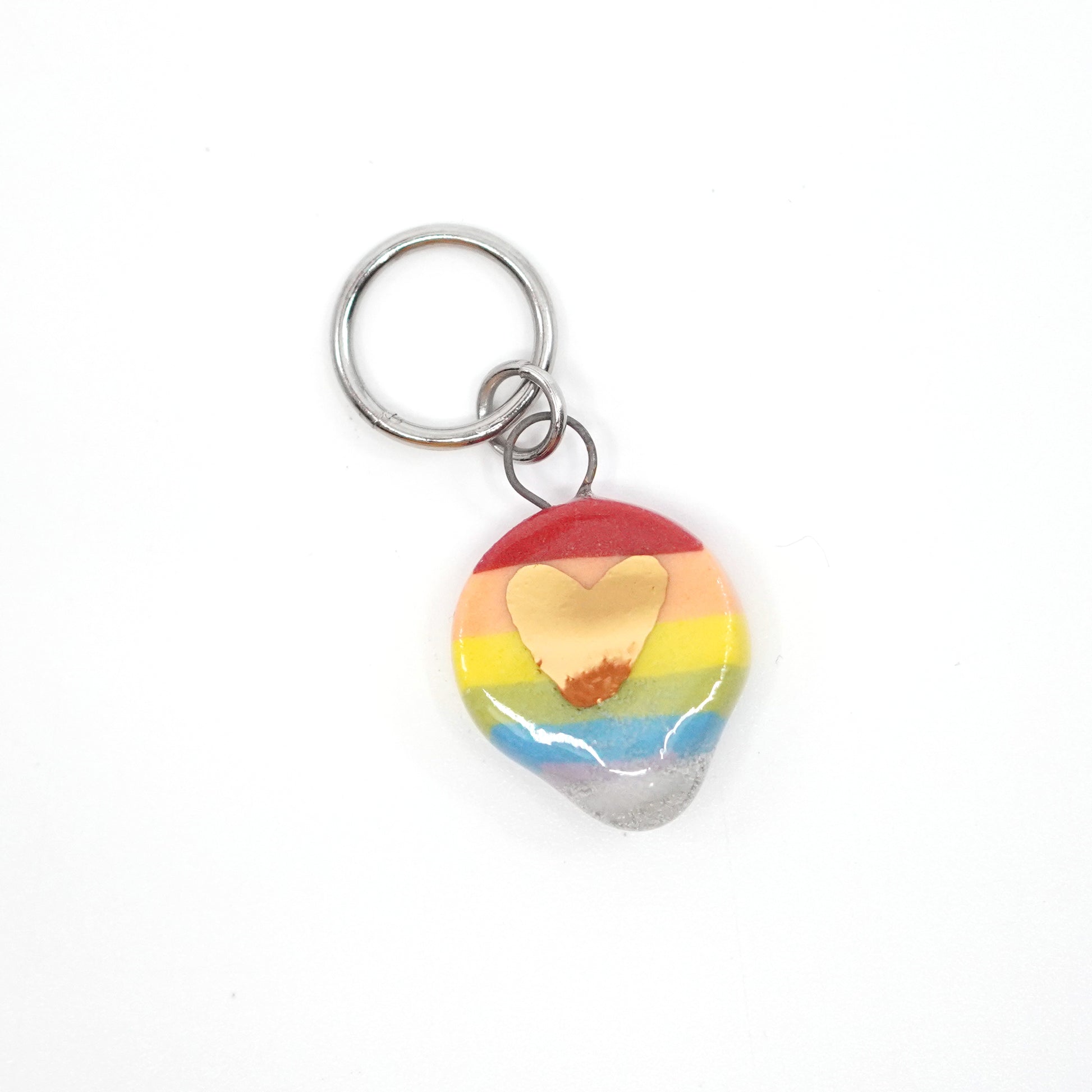 Add some handmade stitch markers to your knitting project! This individual stitch marker can fit up to a size 10 needle. The gold is painted on 24kt real gold fired onto the clay and glaze.