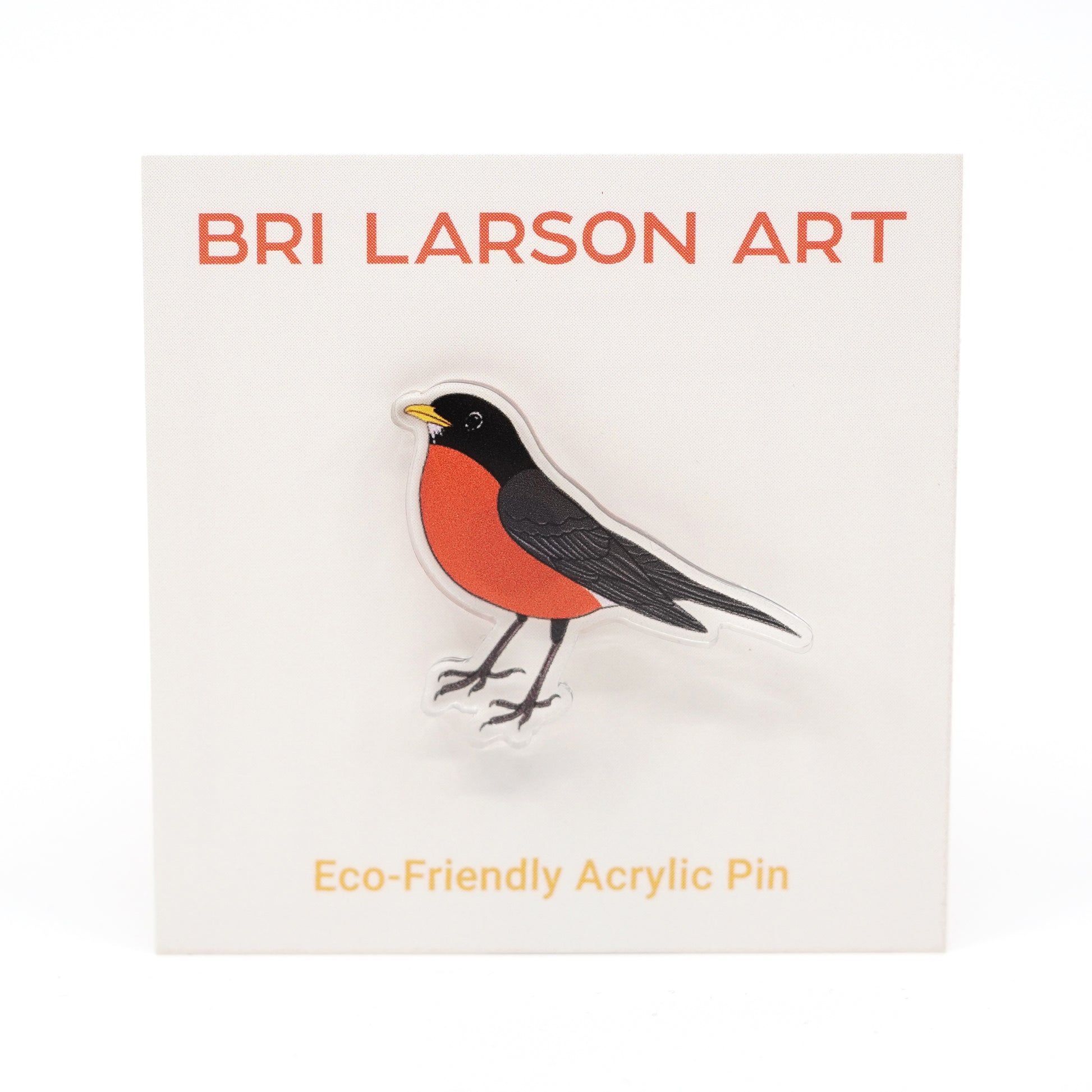 Show off your love of the American Robin with this eco-friendly acrylic pin! Measures approximately 1.25 inches wide.