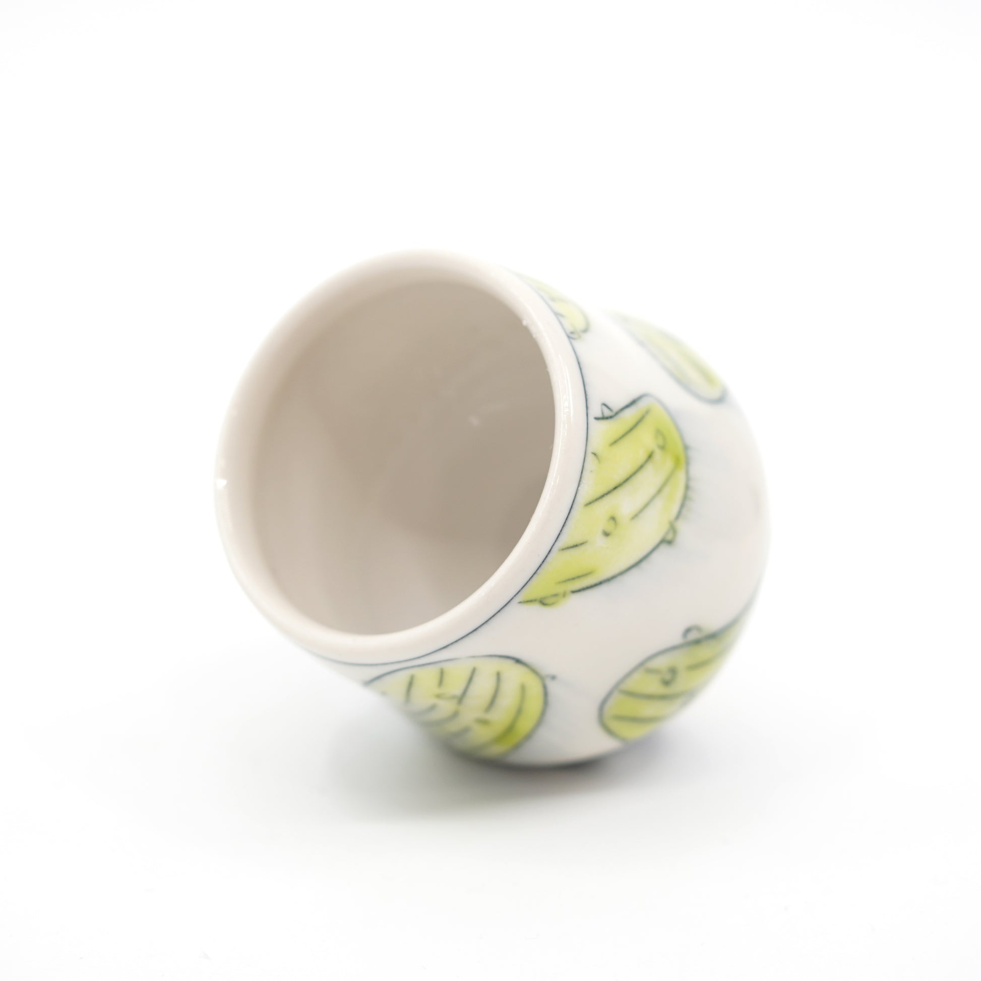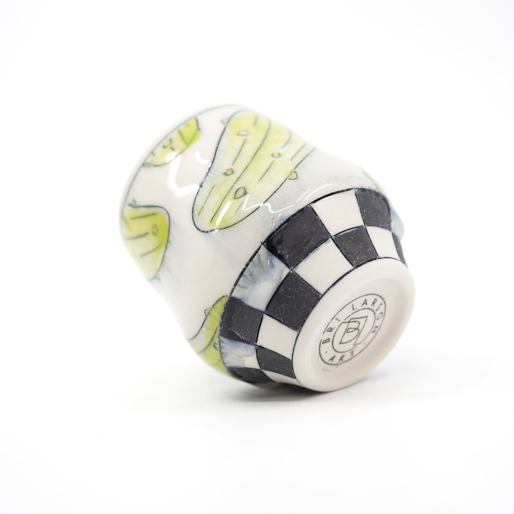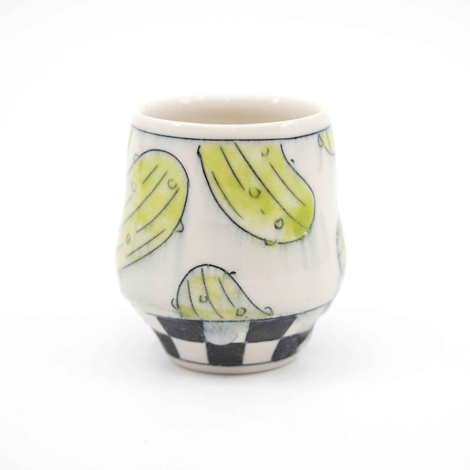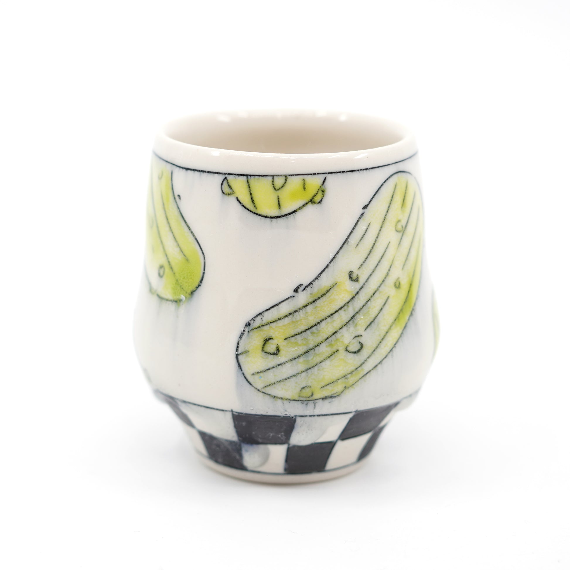 Measures about 2.75 inches tall, 2.5 inches wide and holds approximately 4 oz.