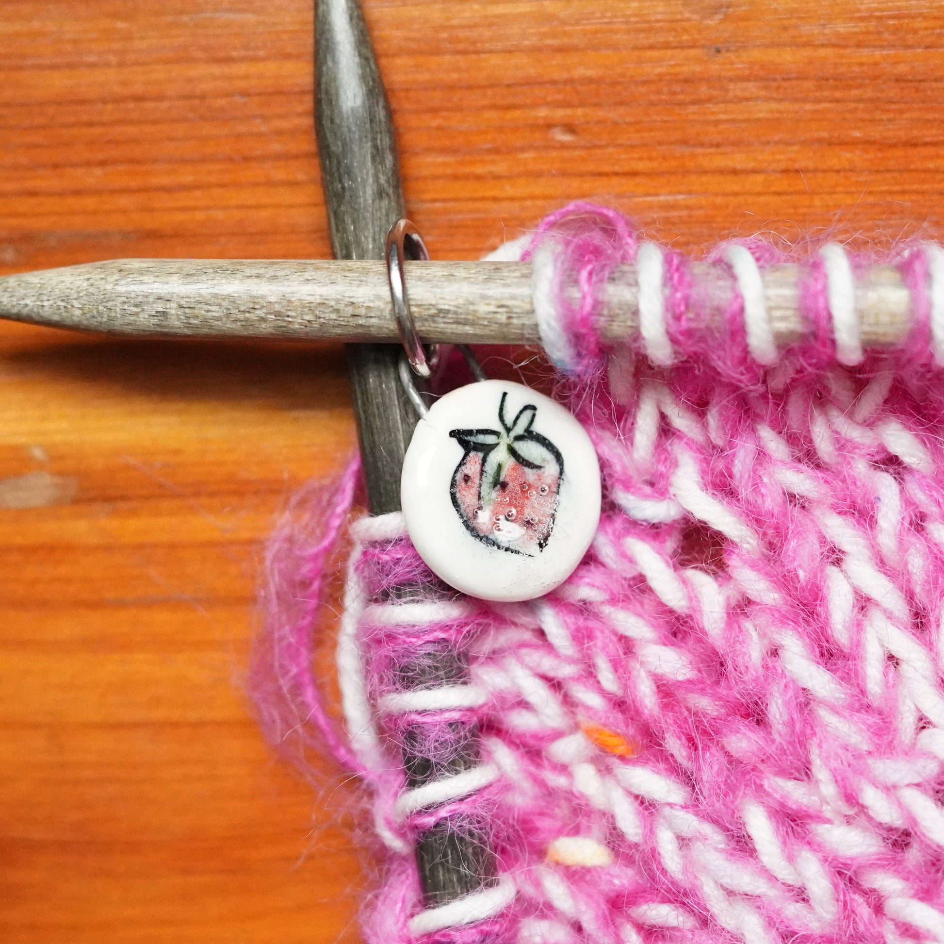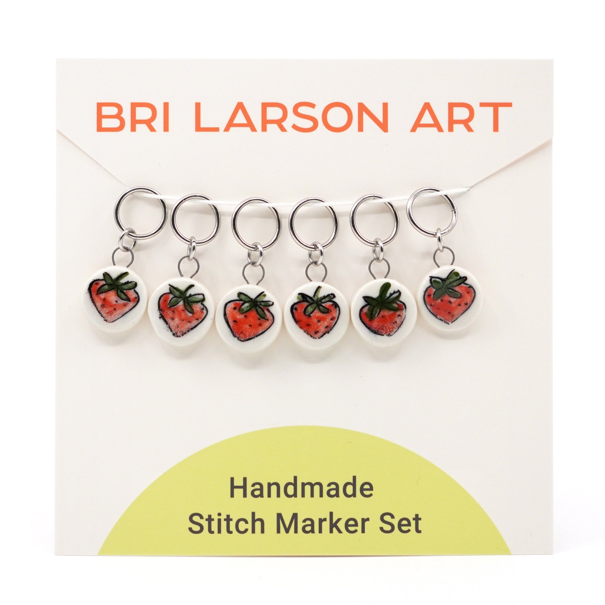 Add some handmade stitch markers to your knitting project! These little stitch markers come in a set of 6 and are shown on a size 10 needle.