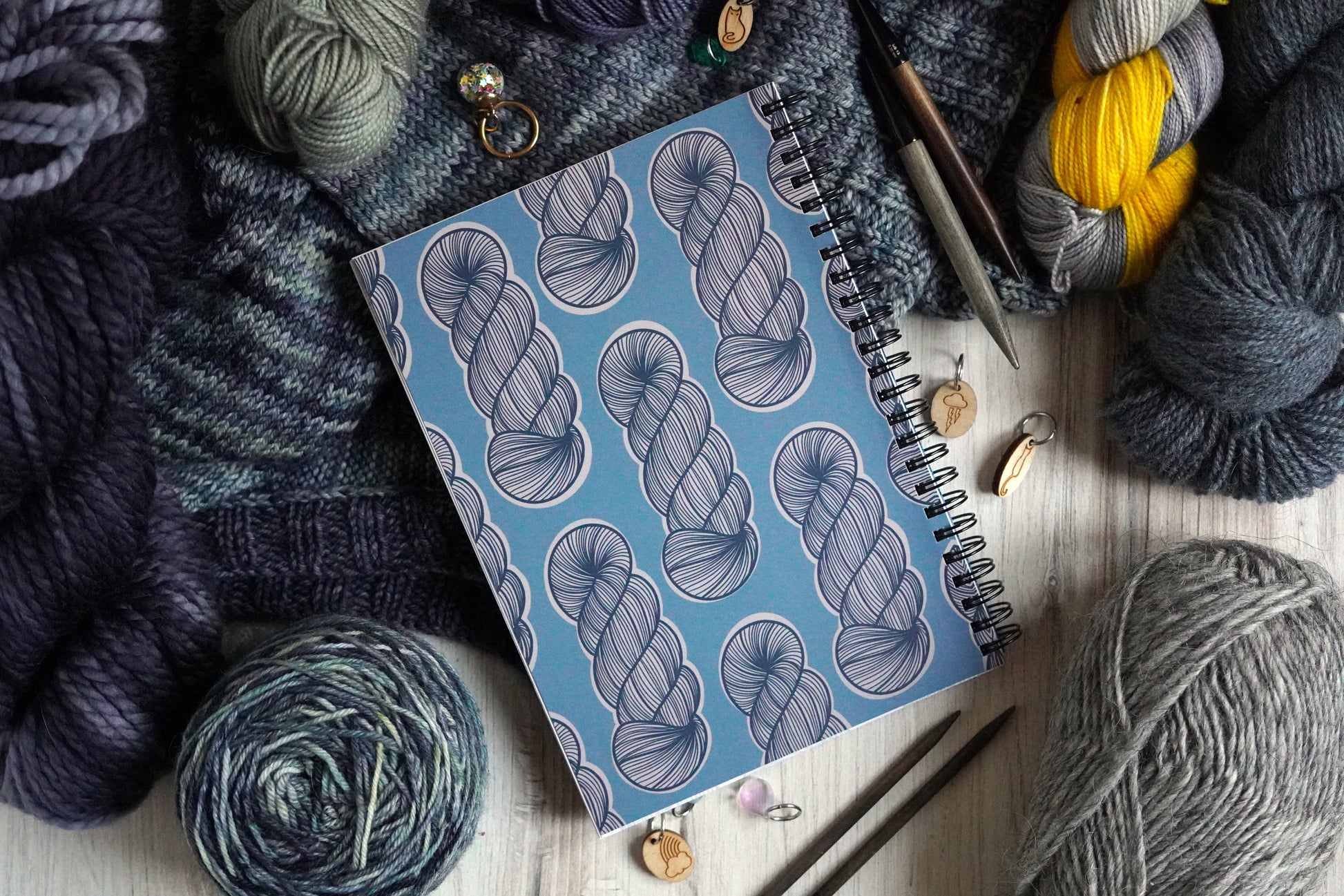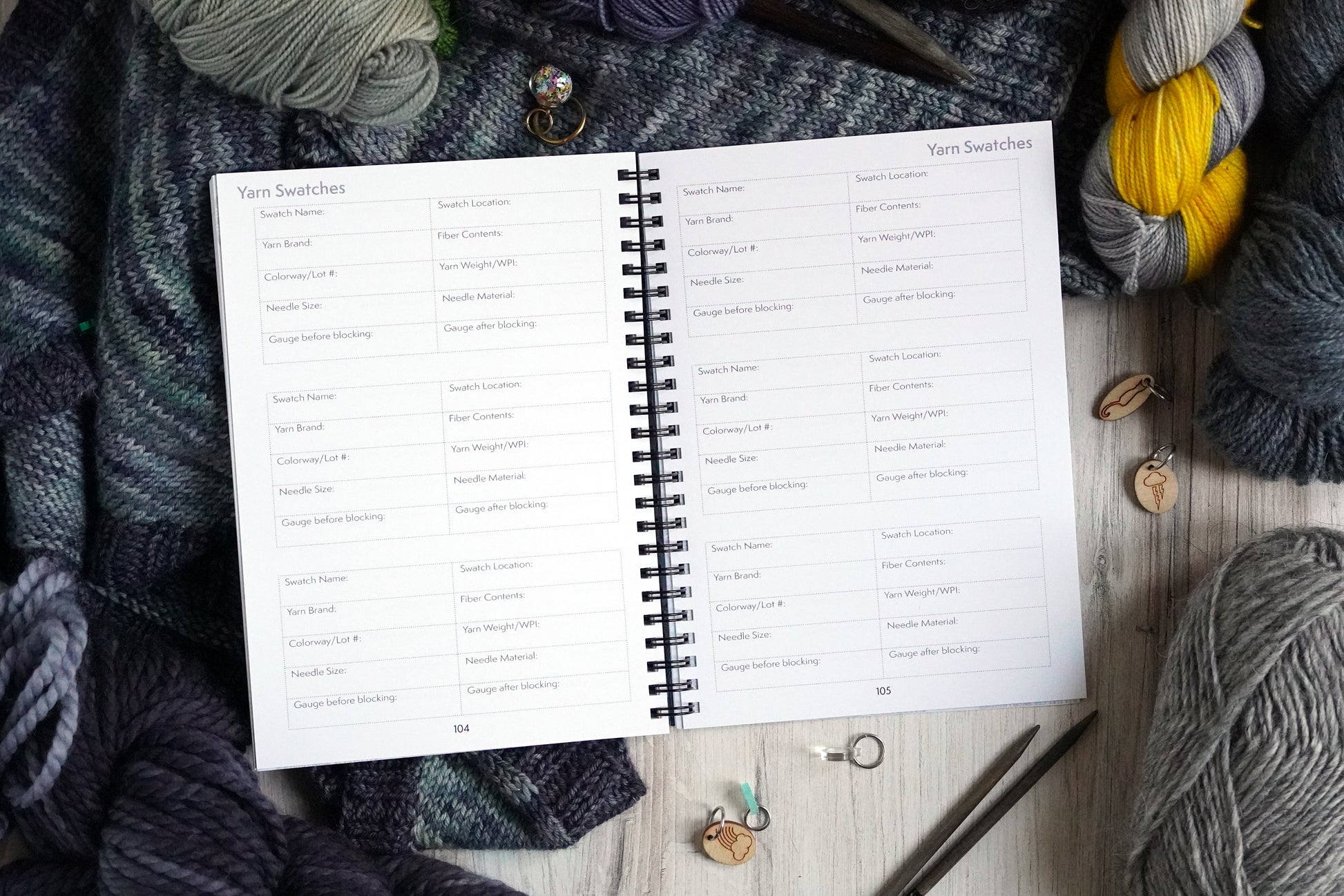 This is the perfect notebook for all knitters and knitting designers! Designed to keep your knitting projects and yarn swatches organized, keep track of projects, as well as offer a space for knitting and color work designs to be created, adjusted and duplicated.