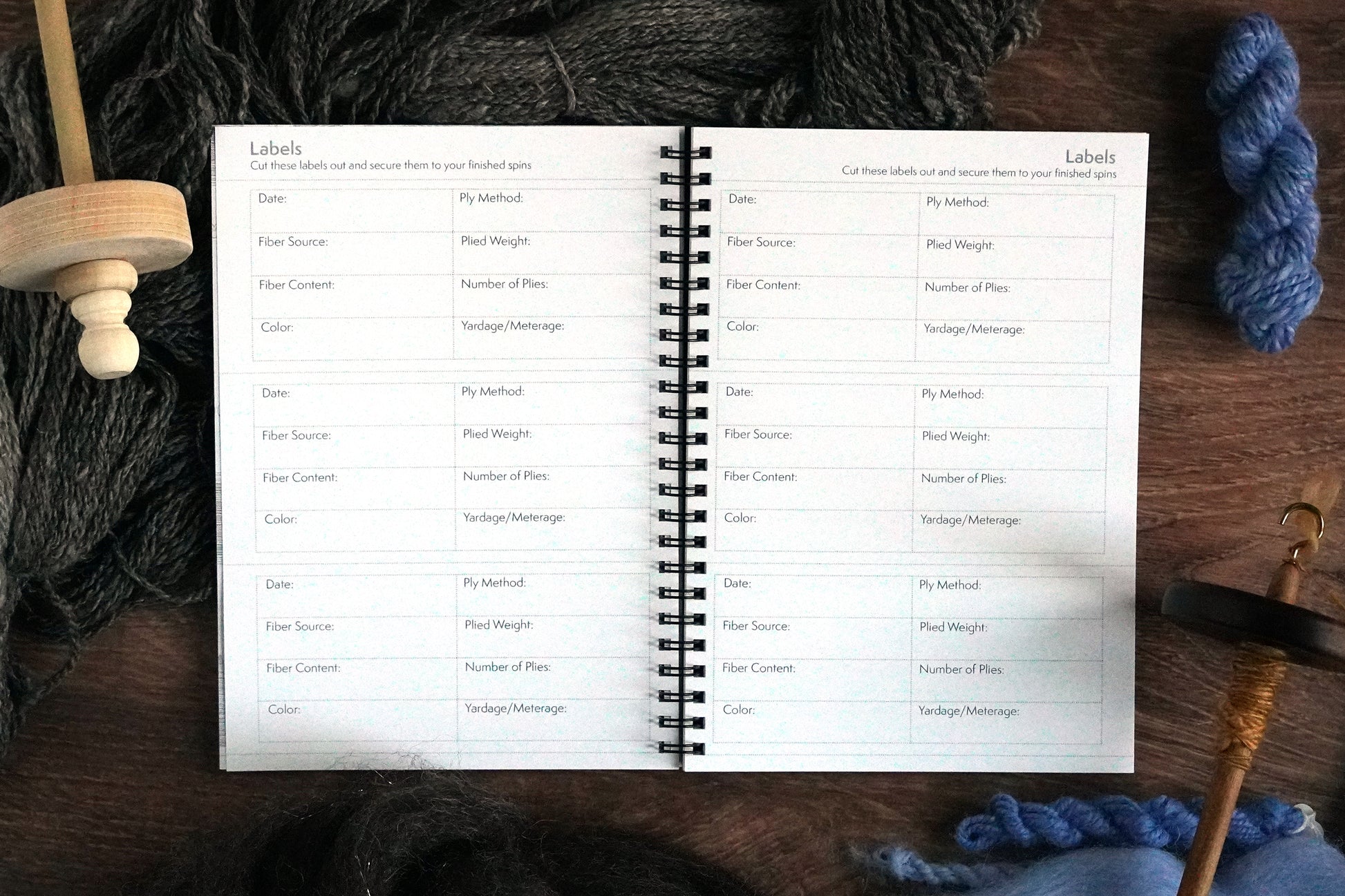 This is the perfect notebook for beginning and experienced spinners alike! Designed to keep your finished spins and swatches organized, keep track of spinning details, as well as some cut out labels to attach to your finished spun fibers. Perfect for keeping track of what went right and wrong, experimental spins, how you work with different fibers, and more!