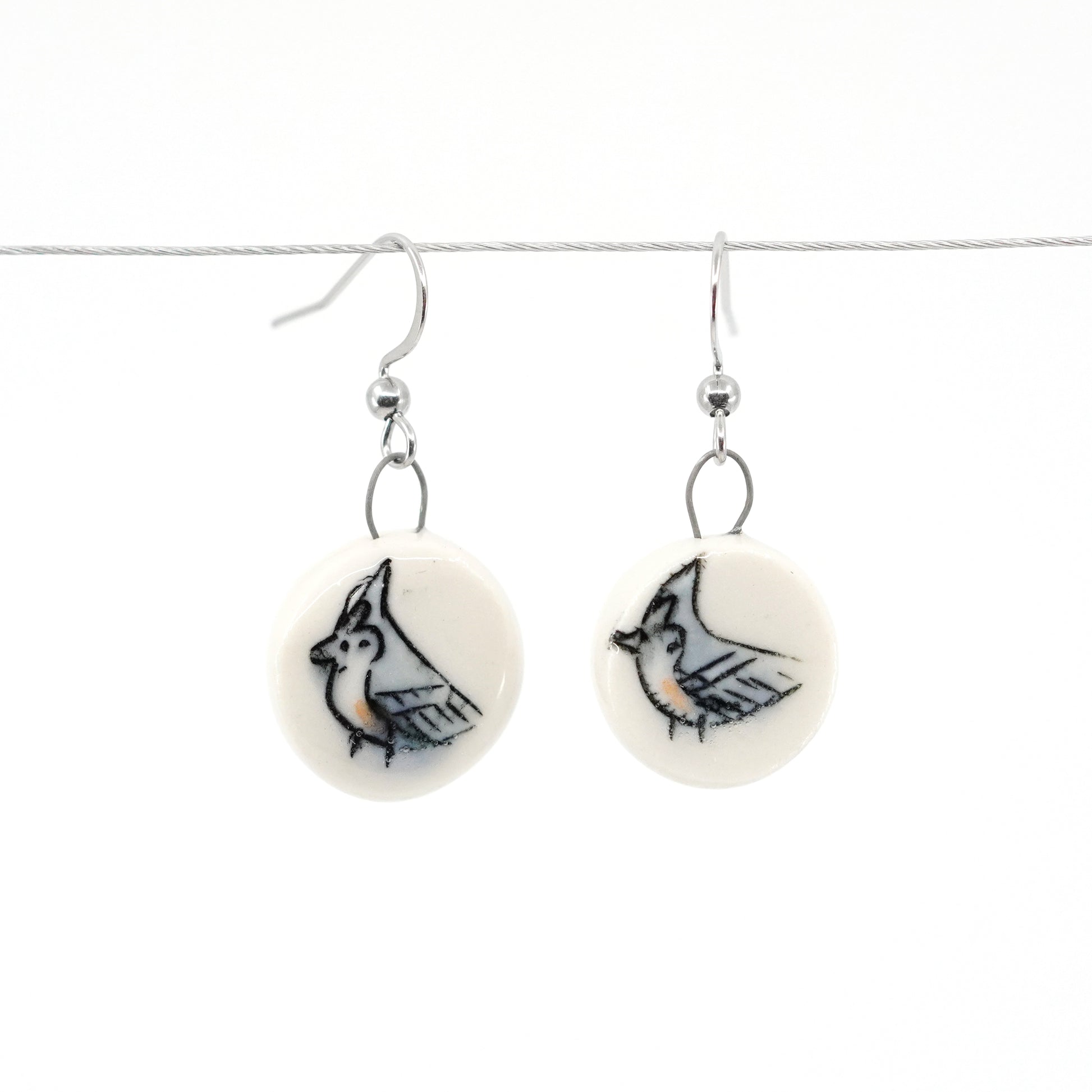 These tufted titmouse earrings are on hypoallergenic 316 surgical stainless steel earring wires and come in a little box.