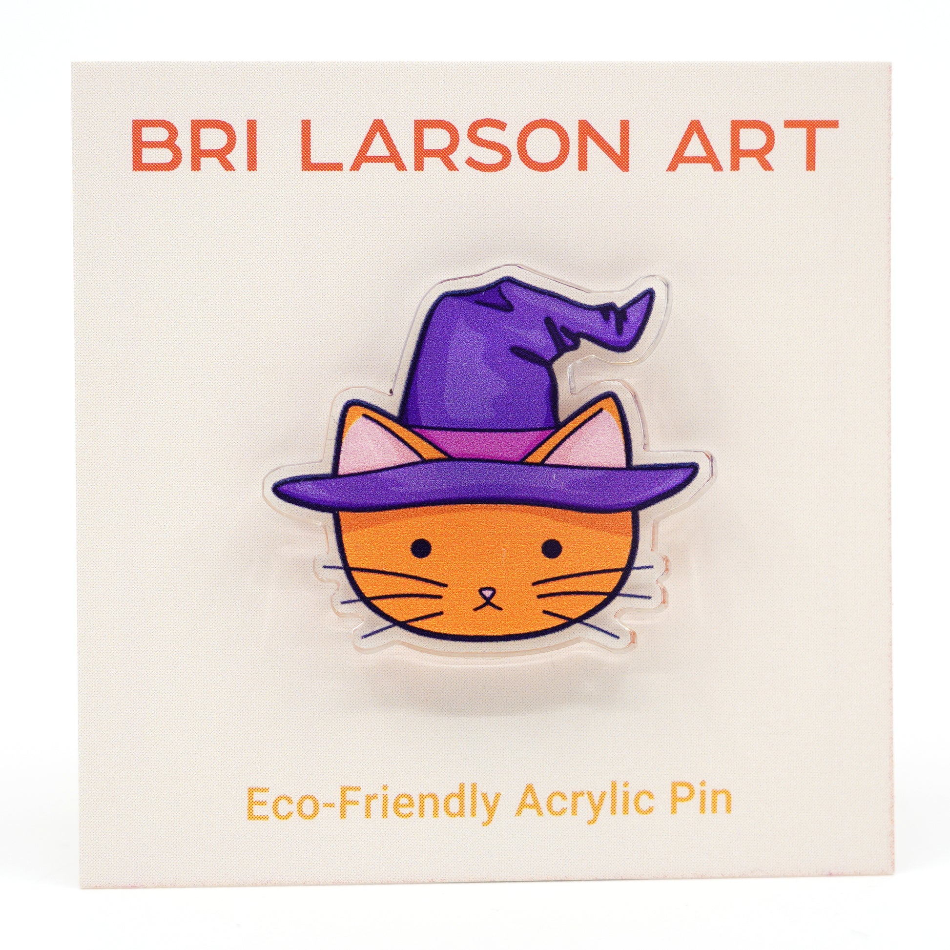 Celebrate cats AND spooky season with this eco-friendly acrylic pin! Measures approximately 1.25 inches wide.