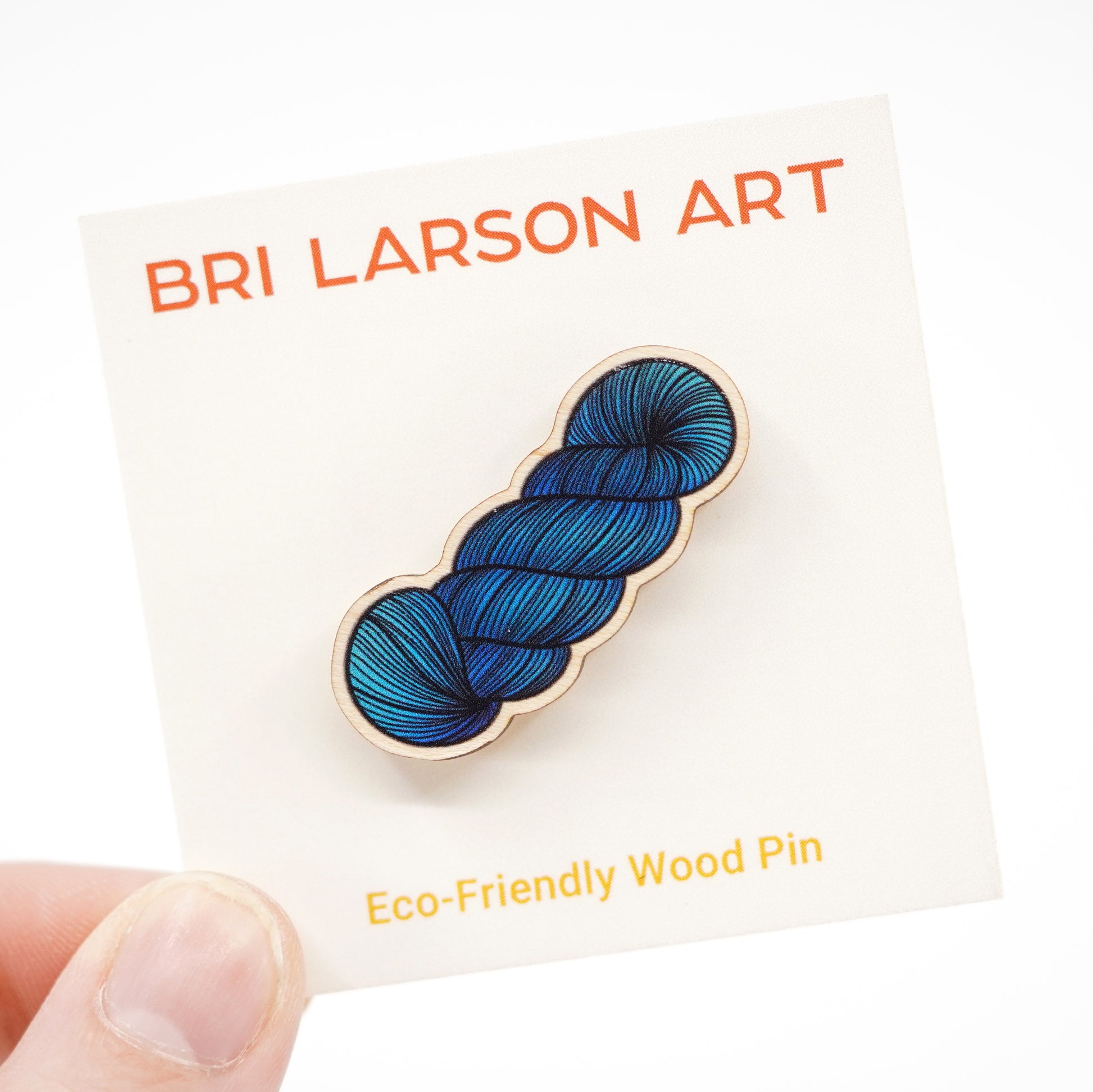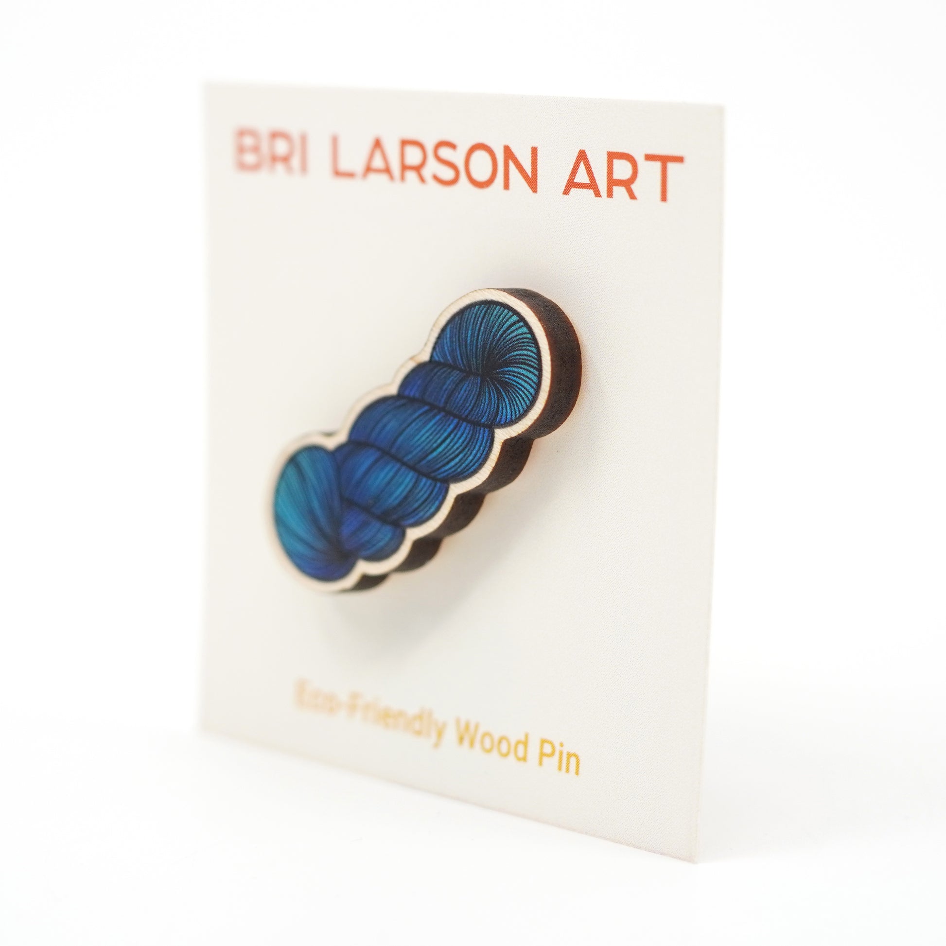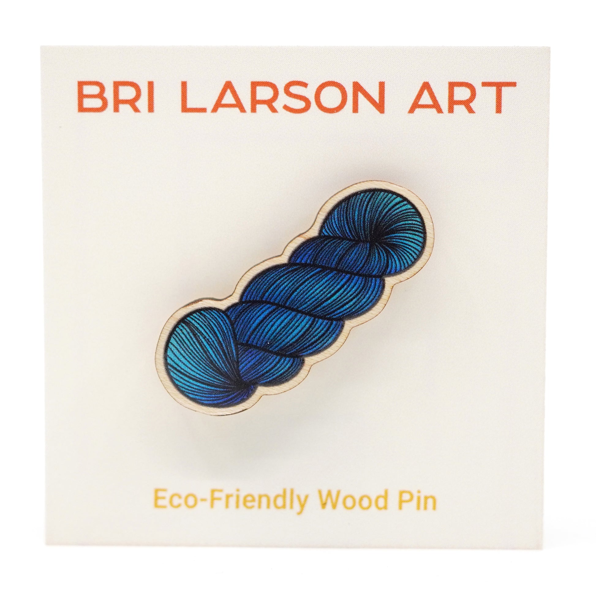 Yarn Skein Eco-Friendly Wood Pin / Blue